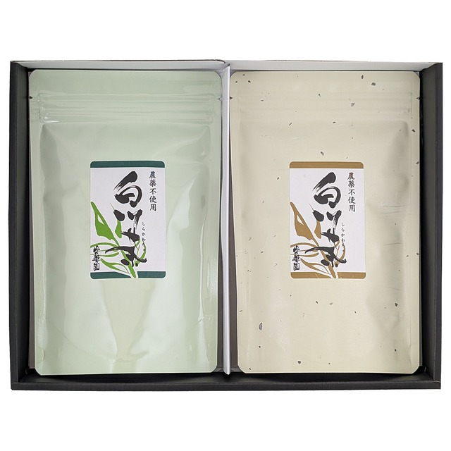農薬不使用栽培白川茶 150gスタンドパック 2本組ギフト 箱サイズ:230×300×50mm
